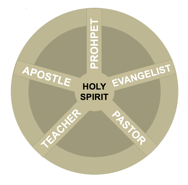 These 5 roles are ideally modeling what maturity and ministry look like in their own regard, with that modeling/discipling building two types of community: 1. Tribe: a community of Evangelists growing together in maturity, support and encouragement, developing a flow of up and coming evangelists learning how to operate with the Holy Spirit under the oversight of more mature brothers and sisters of their tribe (and the same goes for each of the 5 roles). 2. Ministry teams assembled from each successive layer of maturing believers: an apostle, a prophet, evangelist, pastor, and a teacher assembled into a team that seeks the Lord together for the ministry opportunity He wants them to step into.